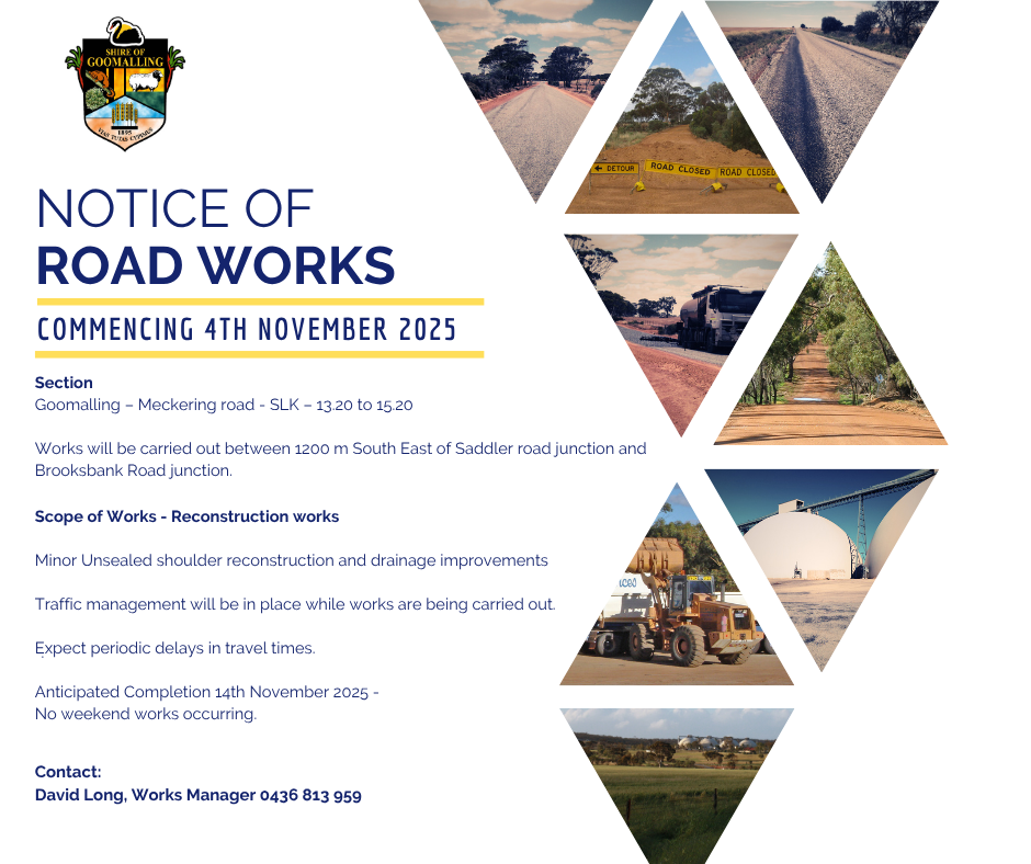 Notice of Roadworks - Goomalling – Meckering road