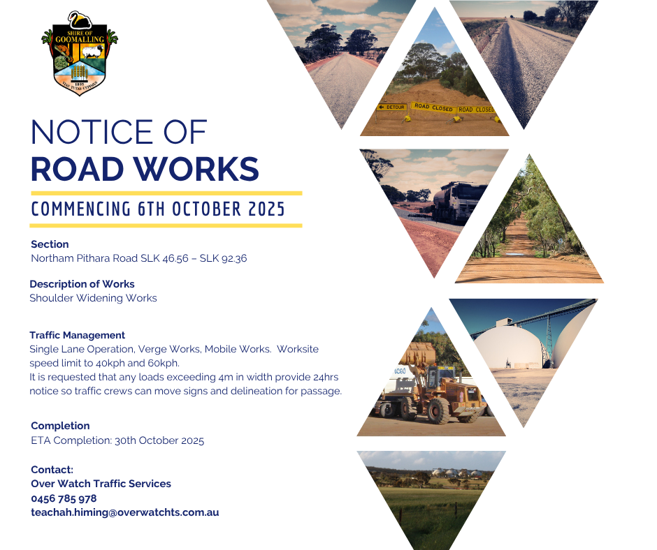 Notice of Roadworks - Northam Pithara Road