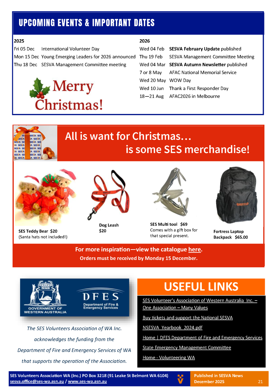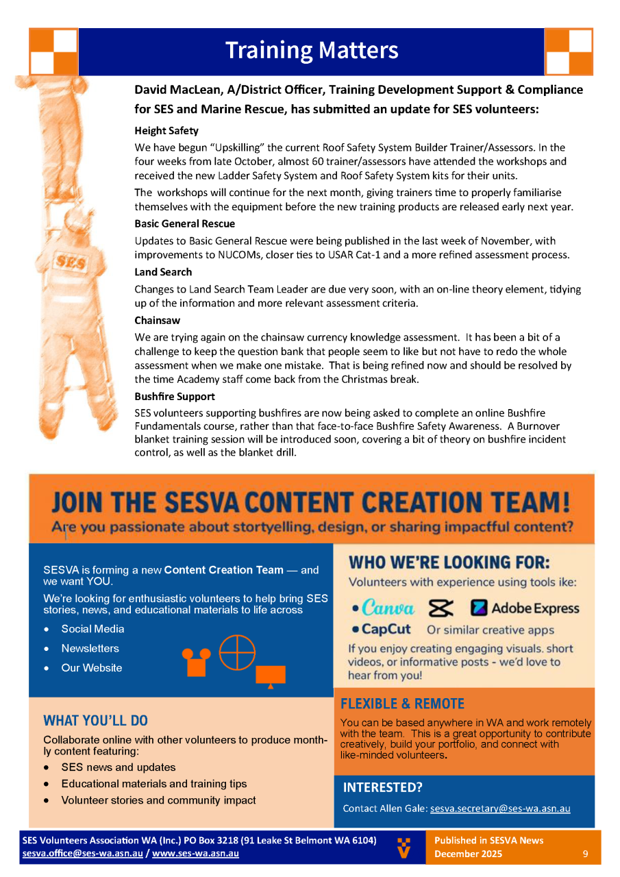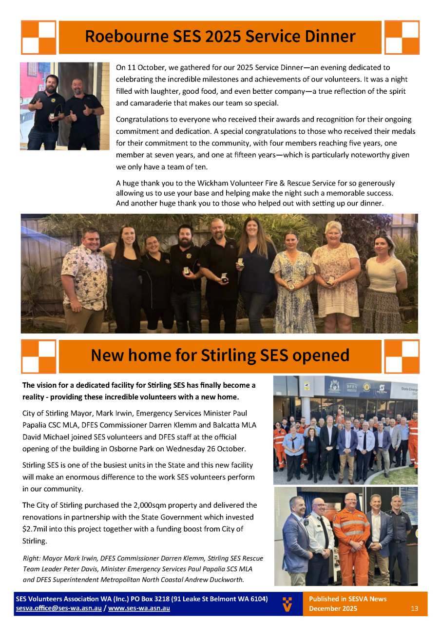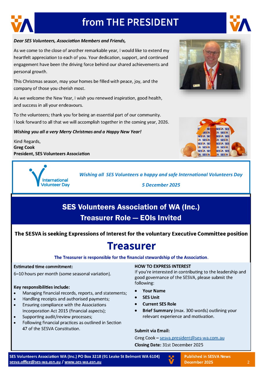 SES Volunteers Association of WA - Newsletter - Summer 2025