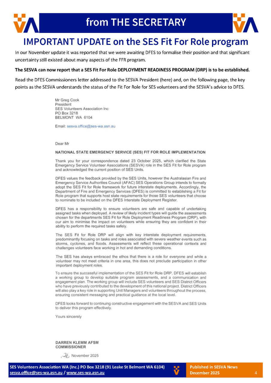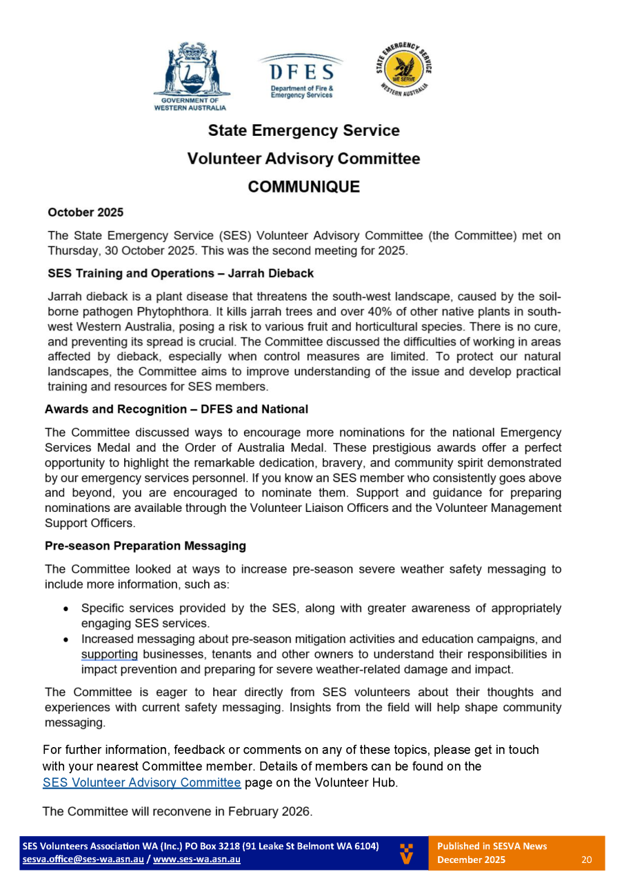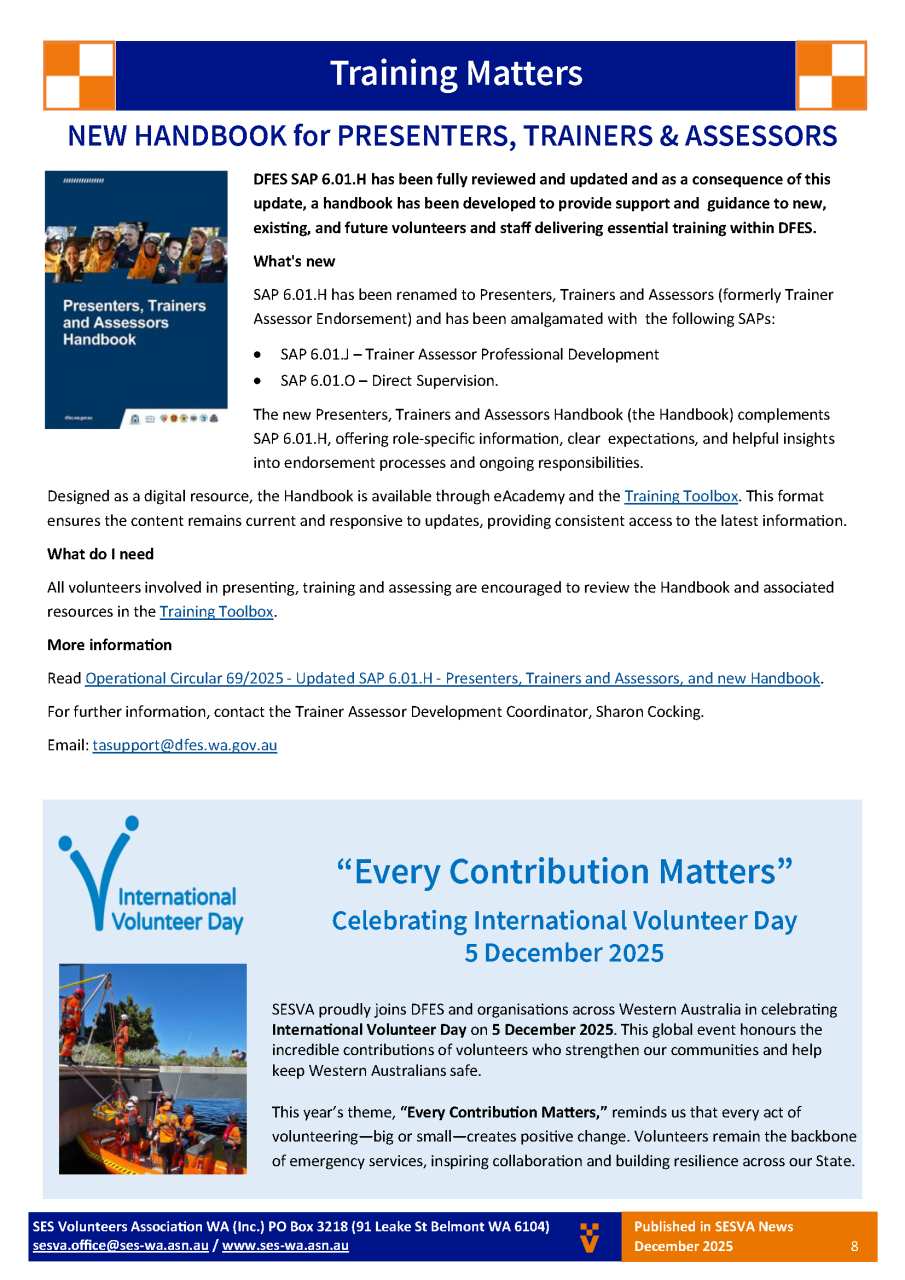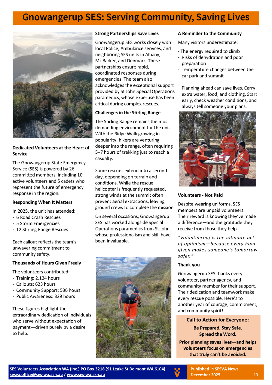 SES Volunteers Association of WA - Newsletter - Summer 2025